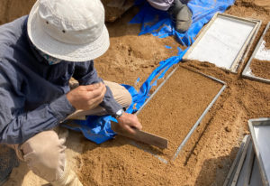 今日はいよいよ種まきです。播種機を使って苗箱に種を蒔いていきます。はじめに、種まき後に被せる土(覆土)をふるいにかけ、かたまりなどを除きます。覆土の準備ができたら、11日に用意しておいた土の入った苗箱を播種機へ。 苗箱を […]