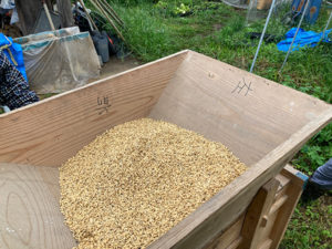 今日は、種籾(たねもみ)を選別する塩水選をしました。塩水選は、一定濃度の塩水に種籾を入れ、浮いた種籾は取り除いて、沈んだ良い種籾を選別する方法です。 はじめに、唐箕(とうみ)という農具を使って、籾殻やゴミなどを風で飛ばし […]